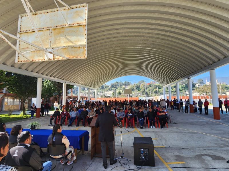 Esta mañana nuestro alcalde municipal Rausel Cervantes visito la Escuela Secundaria Técnica N° 101 “Lic. León Guzmán” ubicada en la comunidad de San Pedro Techuchulco, para dar el banderazo de inicio de obra, con la compañía de síndico, regidores, autoridades auxiliares y padres de familia, para realizar la construcción de un nuevo módulo de sanitarios, el cual es de gran necesidad para la comunidad estudiantil debido al incremento de alumnos que se está presentando en esta institución. Las autoridades directivas expresaron un enorme agradecimiento hacia nuestro presidente y todo el equipo de trabajo, por seguir apoyando el sector educativo en todo el municipio.